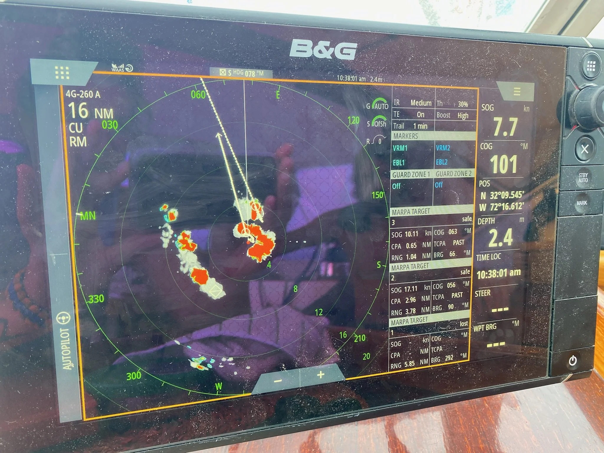 Squall dodging. One of our favourite on-watch pastimes where we get to play with the radar’s target acquisition abilities and use our localized navigation skills to try and avoid getting wet!